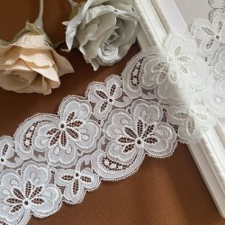 2)フランス製リバーレース ホワイト 幅1.1cm繊細な小花柄 [28443 白]1m1100円、反売りは15%off