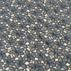 4)刺繍レース生地 約35cm×約75cm 大胆な花柄刺繍レース ブラックホワイト [980180 紺色]330円
