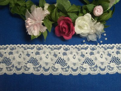 リバーストレッチレース オフホワイト 2m巻!幅6.2cmリボン通し風 [5786 オフ白2m]