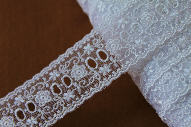 刺繍レース オフホワイト 幅6.7cm薔薇柄 3m巻 [2071 オフ白]
