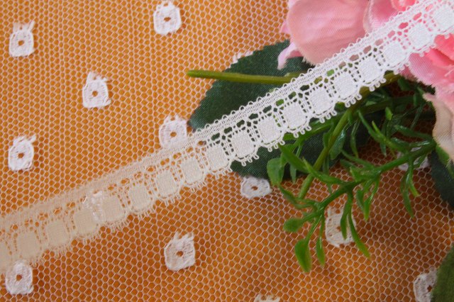 【おまとめ買いはさらにお買い得】リバーレース オフホワイト 幅1.2cm スクエアドット柄