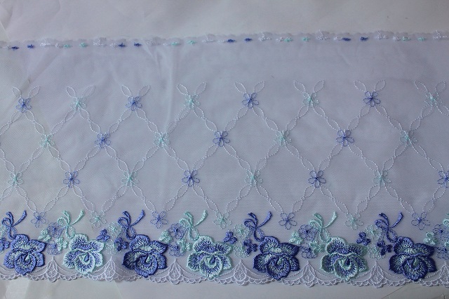 幅23.2cm美しい薔薇柄チュールレース ブルー
