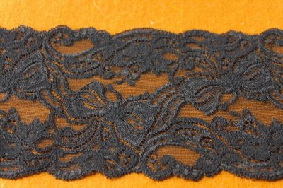 1m!幅13.5cmリボンと薔薇のフランス製ストレッチリバーレース 黒