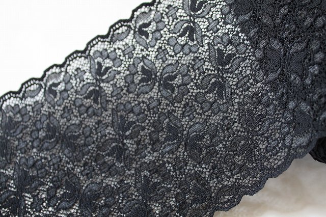 【1m110円】5m!幅14.9cmコード使い綺麗な花柄ラッセルストレッチレース 黒