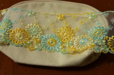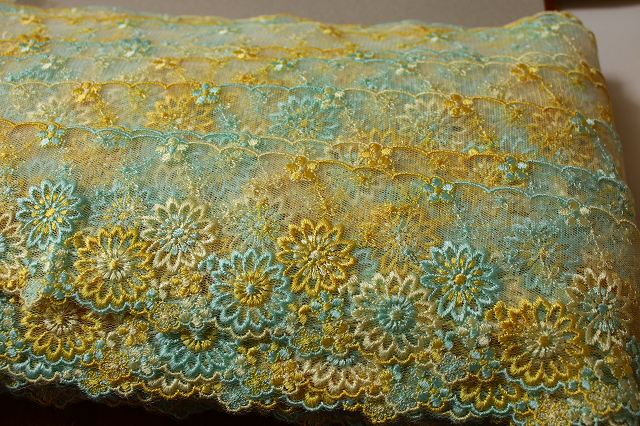 【最高級の日本製】1m巻!幅8.2cm最高級花柄チュールレース 黄色ターコイズ