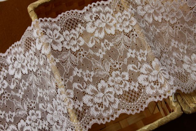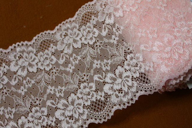 5m巻!幅14cmお花がいっぱいラッセルストレッチレース ピンク [51610 VP ]