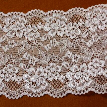 ラッセルストレッチレース サックス 幅8.5cm美しい薔薇柄 5m巻日本製 [8724 青 76Q]