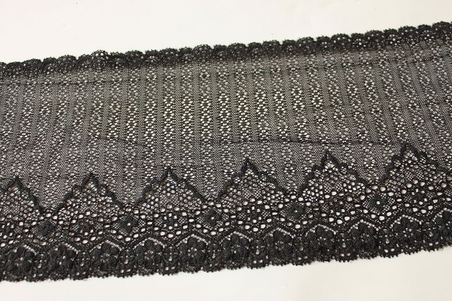 幅8.2cm美しいラッセルストレッチレース 黒 日本製 [813 ブラック]