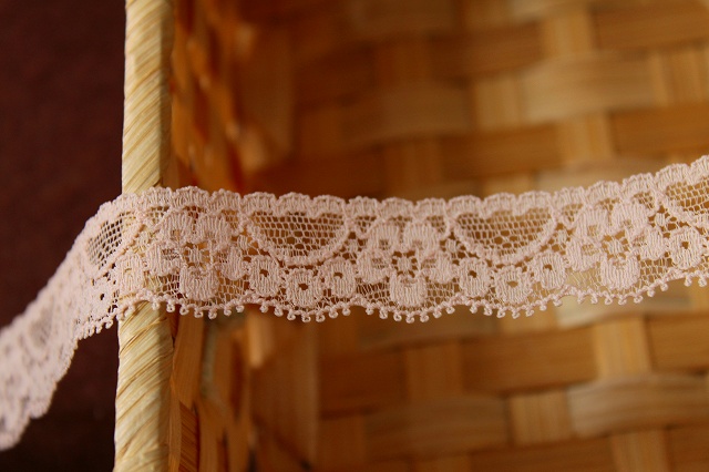 5m!幅2cm小花柄ストレッチリバーレース ピーチ
