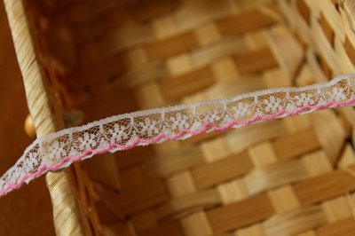 【日本製】5m!幅1.4cm小花柄ラッセルレース ピンク [23-2461 ピンク]