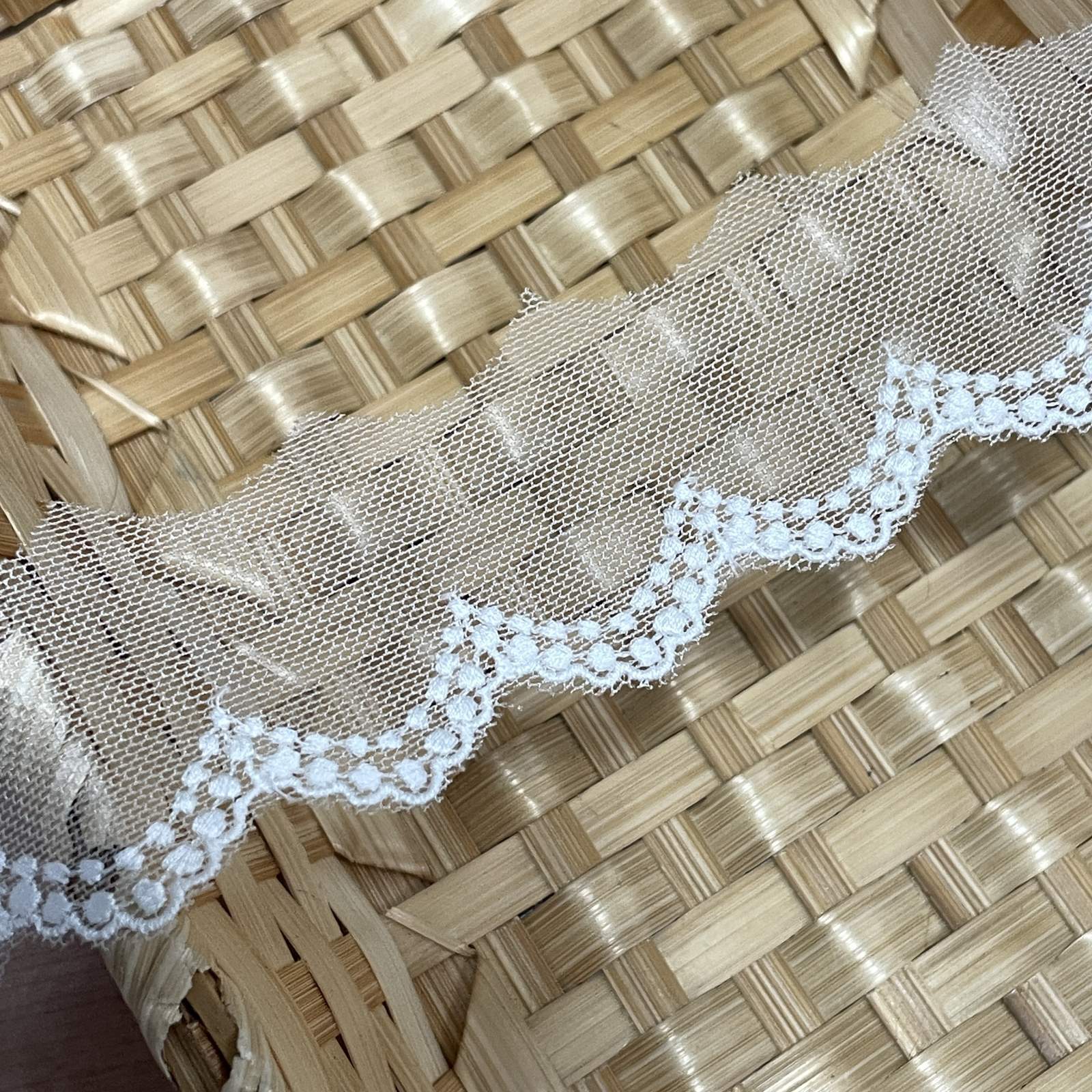 【繊細な日本製】チュールレース オフホワイト 幅1cm綺麗な波柄 3m [25-811 オフ白]