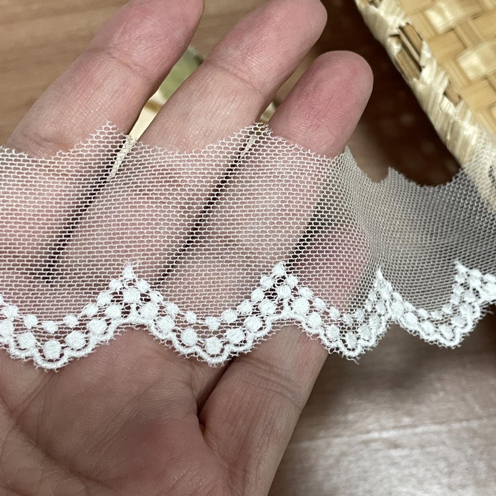 【高品質な日本製】チュールレース オフホワイト 幅1.9cm 1.7m ドット柄 刺繍は綿糸100% [1397 オフ白(1.7m)]
