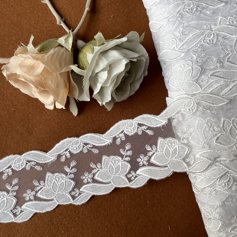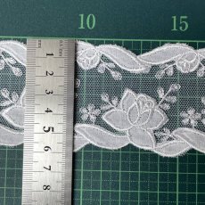 サテン刺繍レース オフホワイト 幅8.2cm薔薇柄 日本製 コスプレ、衣装にも [10-2070 オフ白]