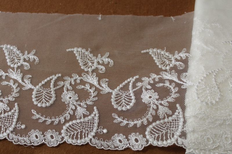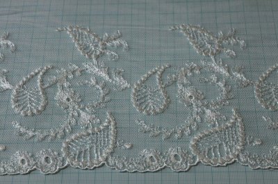 チュールレース オフホワイト 幅9cm両山ペーズリー柄 3m巻! [86374 オフ白]