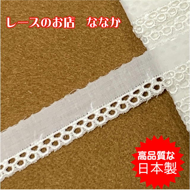 3m巻!幅7.5cm可愛いドット柄綿レース ホワイト 日本製 [14980 白]