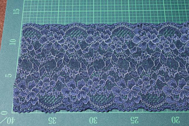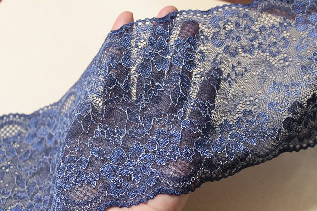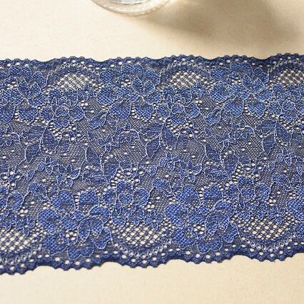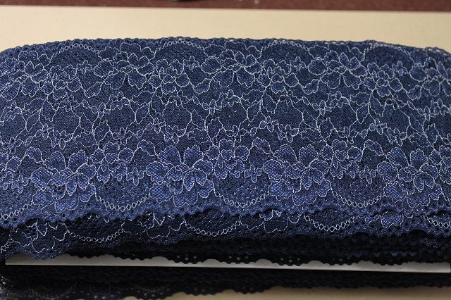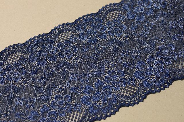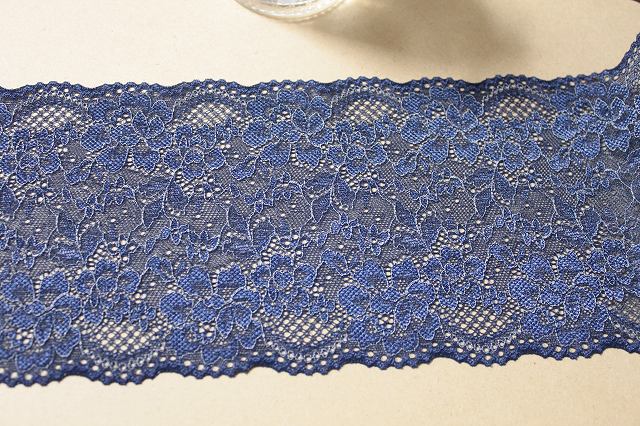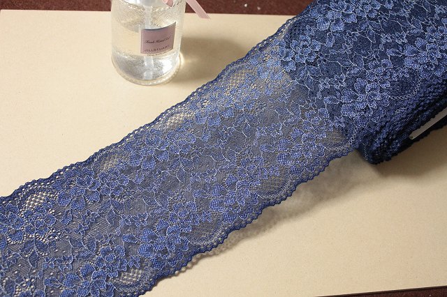 【1m110円】ラッセルストレッチレース 紺色 1m巻 幅13.5cm 綺麗な薔薇柄日本製 [220 ネイビー]
