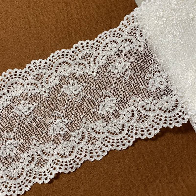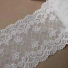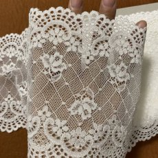 【1点限り】ラッセルストレッチレース ベージュ 7m巻!幅14.7cm綺麗な花柄日本製 [1175 1555 ベージュ]