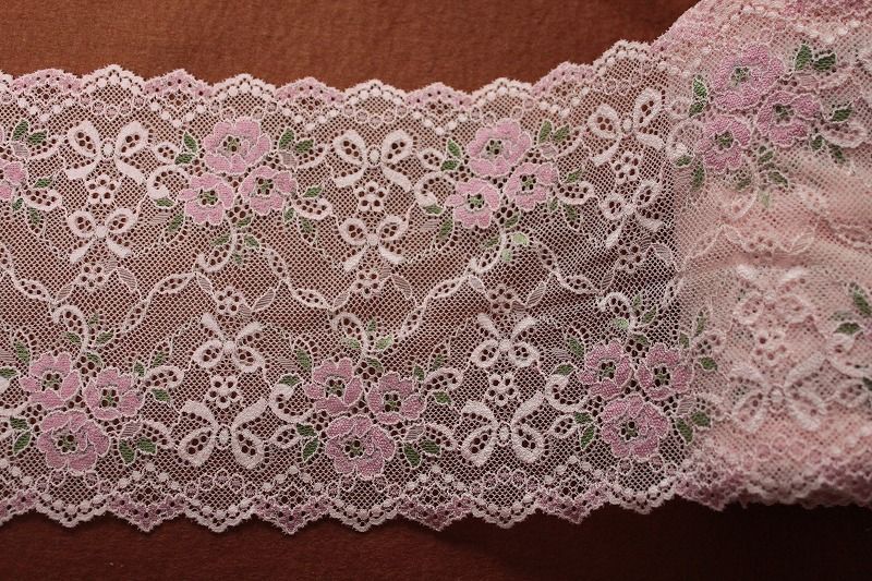 【1m110円】ラッセルストレッチレース ピンク2 幅17.2cm 薔薇柄 5m巻 [83016 ピンク2 xpwxオフ]