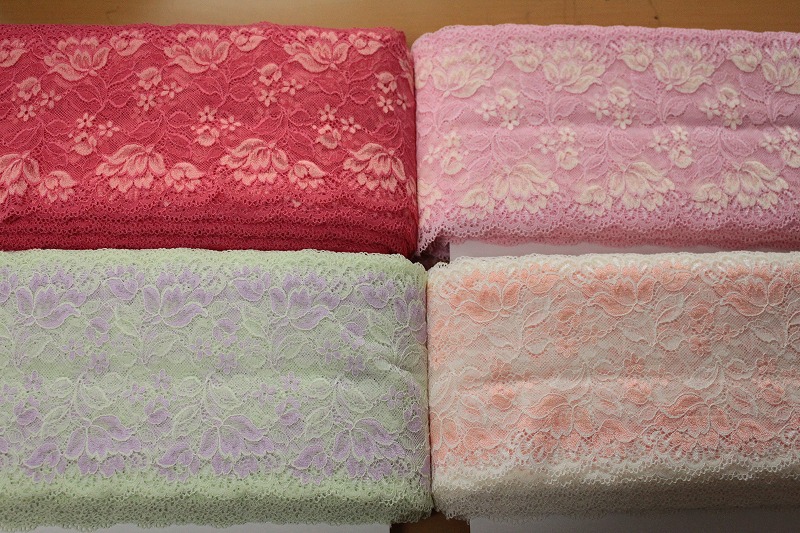 【1m110円】ラッセルストレッチレース 幅12.5cm 落下板薔薇柄 5m巻 [7607]