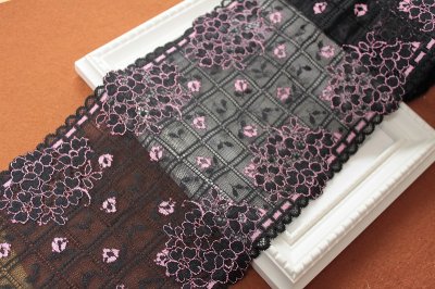 【1m110円】ラッセルストレッチレース 幅12.5cm 落下板薔薇柄 5m巻 [7607]