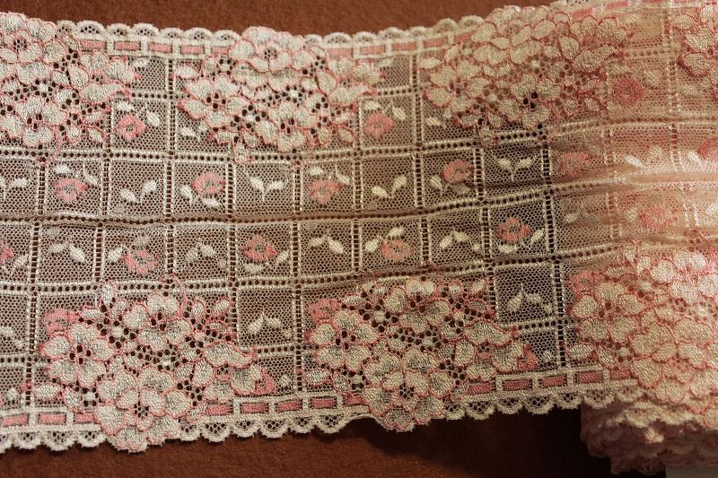 【1m110円】ラッセルストレッチレース 幅12.5cm 落下板薔薇柄 5m巻 [7607]