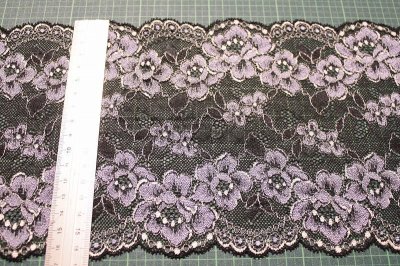 【1m110円】ラッセルストレッチレース ブルーグレー 幅16.4cm 薔薇柄 5m [28083 04ブルーグレーオフ]