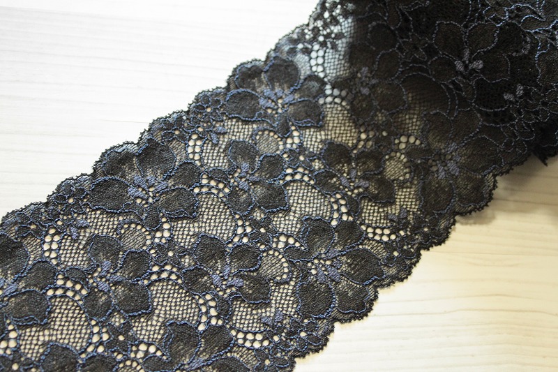 【1m110円】ラッセルストレッチレース 幅12.5cm 落下板薔薇柄 5m巻 [7607]
