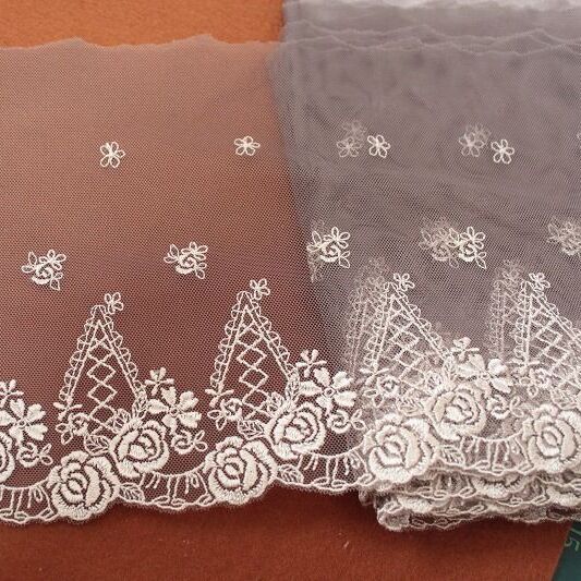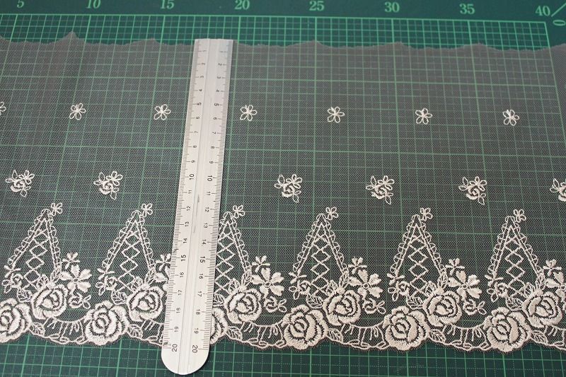 チュールレース サックスベージュ 幅19cm 薔薇柄 1.7m [NTE026N005 青ベージュ db]