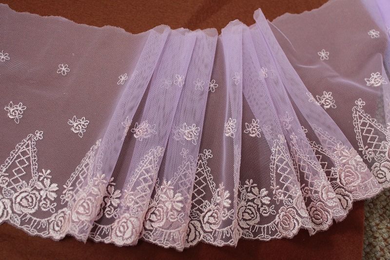 チュールレース ピンクベージュ 幅19cm リボンと薔薇柄 1m [LYY035YU08 ピンクベージュ cm]