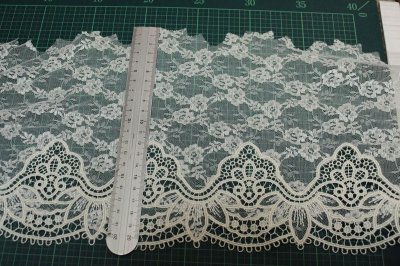チュールレース サックスベージュ 幅19cm 薔薇柄 1.7m [NTE026N005 青ベージュ db]