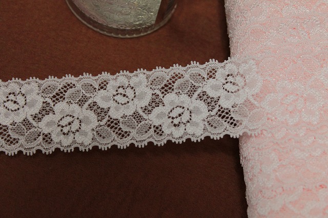 高品質な日本製!3m!幅1.6cm綺麗な花柄ラッセストレッチレース 可愛いピンク [615 03ピンク ]