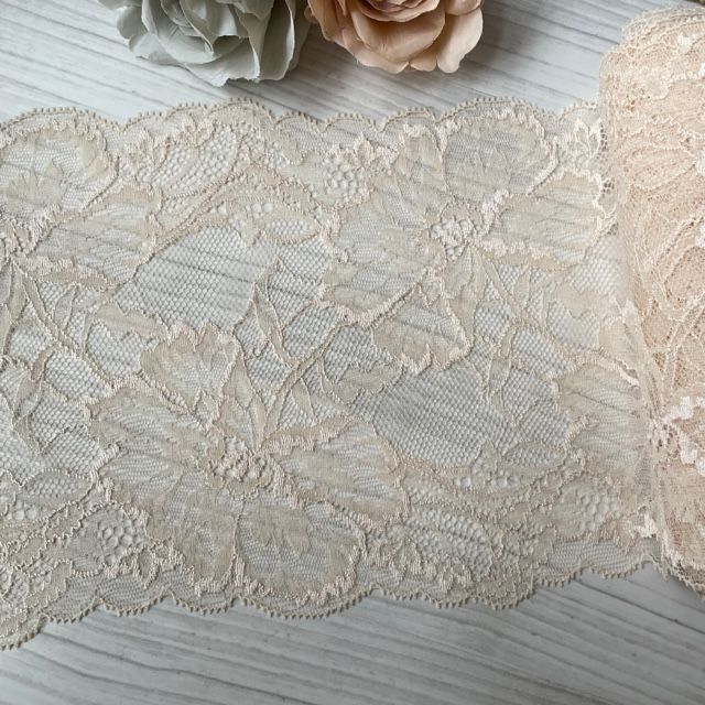 ストレッチリバーレース ベージュ 幅17cm 花柄