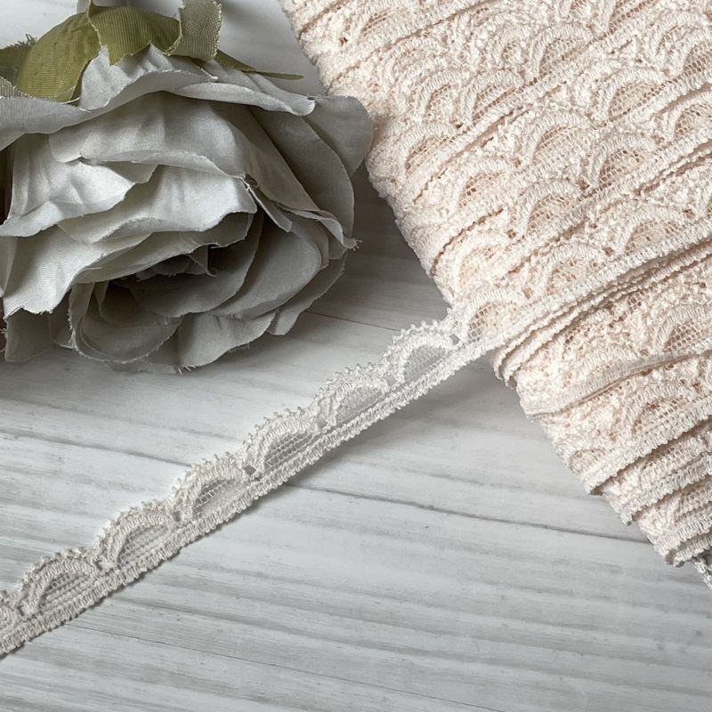 【ほとんど市販されていない】5m!幅8.7cm薔薇柄ストレッチリバーレース オフホワイト [3-29026 精錬]