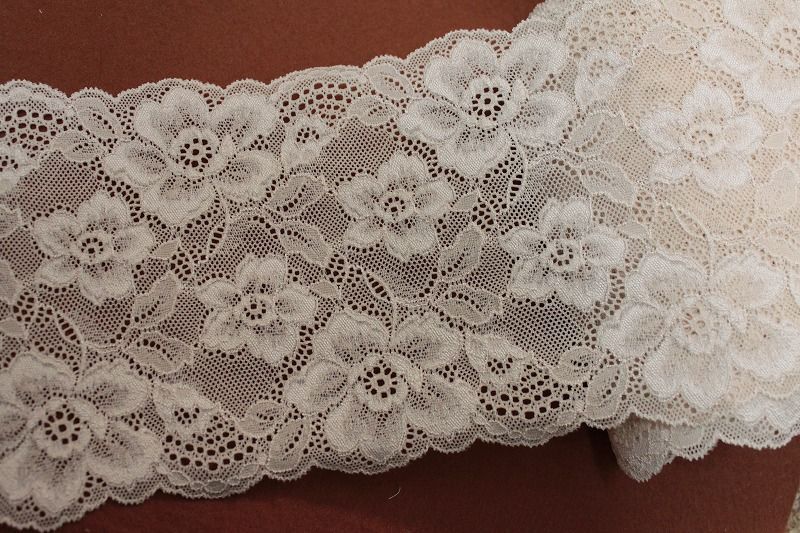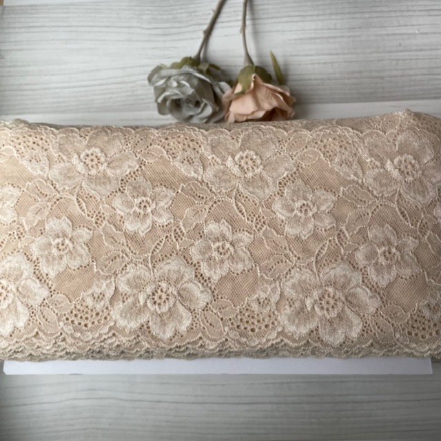 【1m110円】ラッセルストレッチレース ベージュ 幅17.2cm 薔薇柄 5m [3846 ベージュ12-0709]