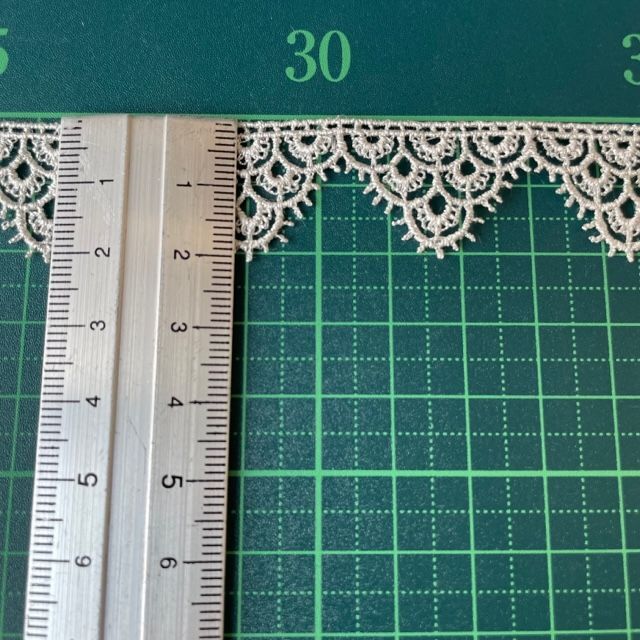 ケミカルレース 銀色 幅3.4cm 両山薄手の幾何学柄 3m巻 日本製 [72142 シルバー]