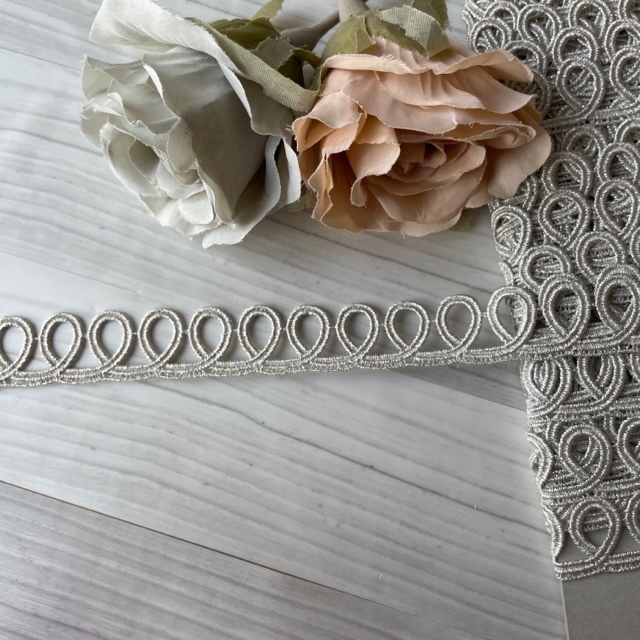 ケミカルレース 銀色 幅1.5cm 両山つぼみ薔薇柄 6.2m巻 日本製 [72230 シルバー]