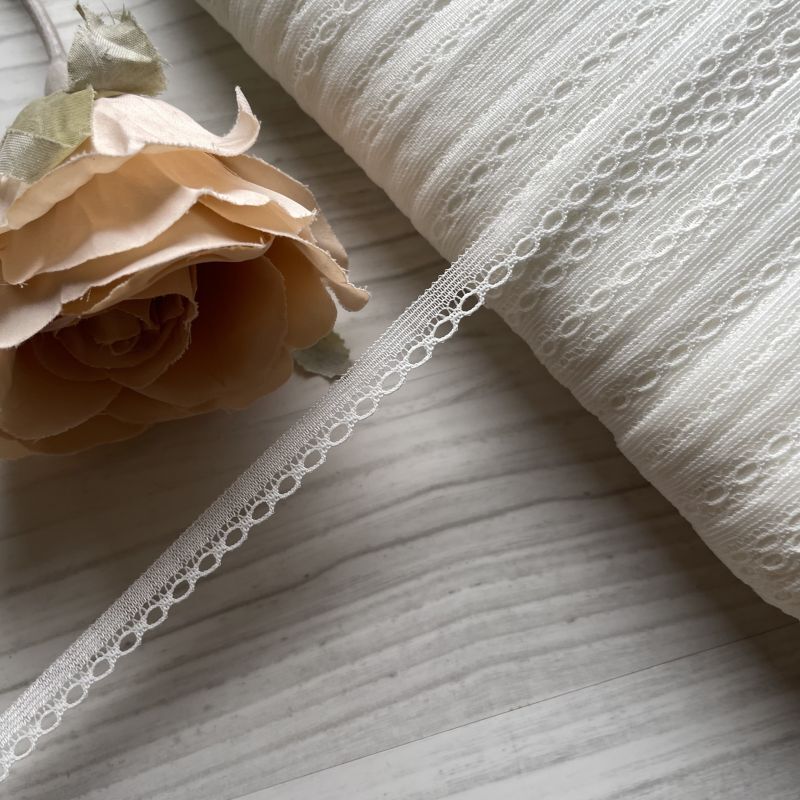 【日本製】ラッセルレース オフホワイト 幅0.8cmリボン通し柄