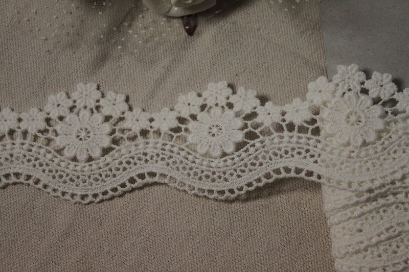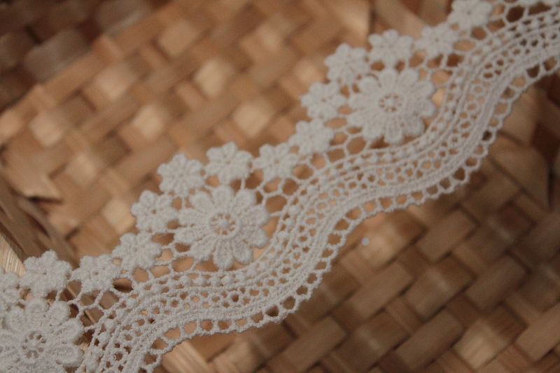 無撚糸の綿糸を使用した美しいケミカルレース、モチーフレースです
