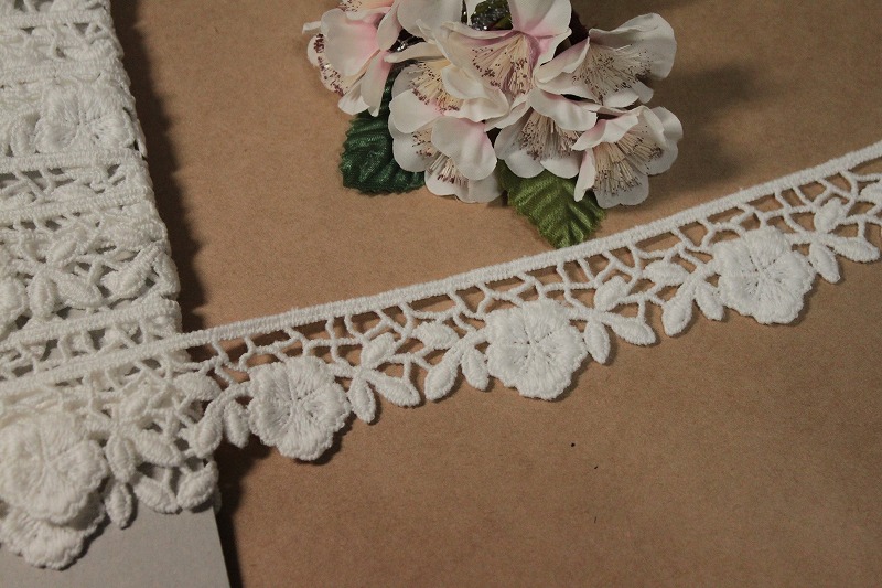 【高品質な日本製】コットンケミカルレース ツインの花柄 幅5.5cm 1mオフホワイト
