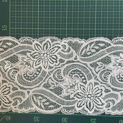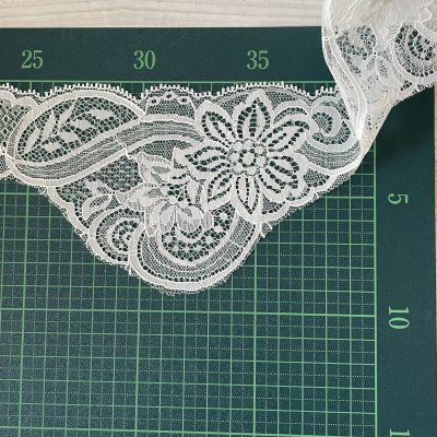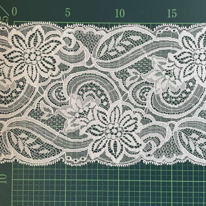 【ベールに高品質な日本製】ラッセルレース オフホワイト 幅14cm 両山花柄柄 62m