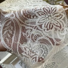 中央でカットしていただくと片山のレースとしてお使いいただけますのでウエディングベールやお洋服にも美しくお使いいただけます