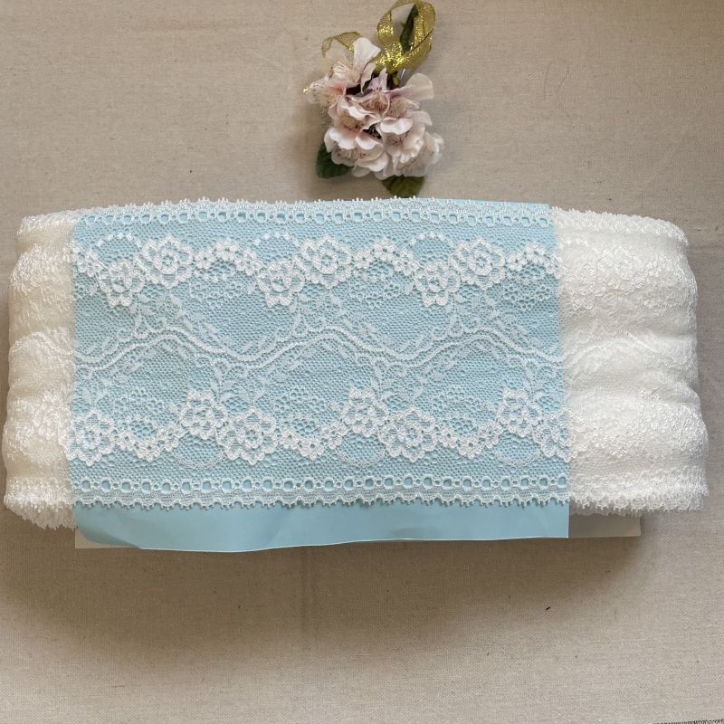 【1m110円】5m!幅13.5cm薔薇柄ラッセルストレッチレース オフホワイト 日本製 [1161 オフ白]