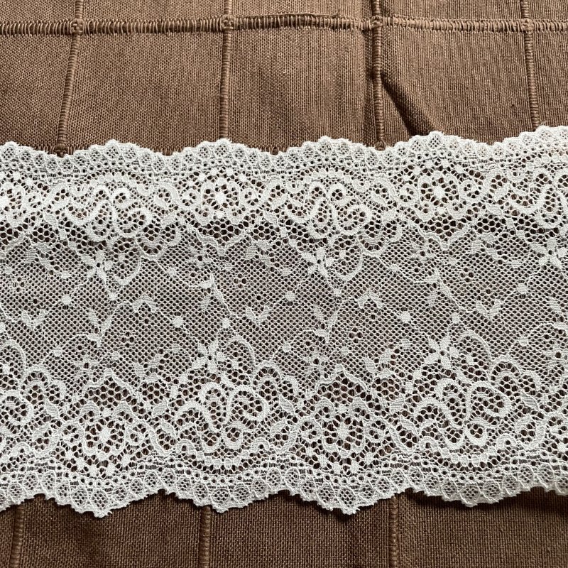 【1m130円日本製】幅13.6cm繊細なアラベスク柄ラッセルストレッチレース オフホワイト5m