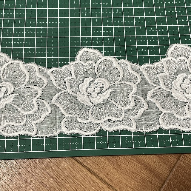 【お買い得4点限り】綿レース ホワイト 幅8cm 大輪の薔薇モチーフ柄 日本製 6m