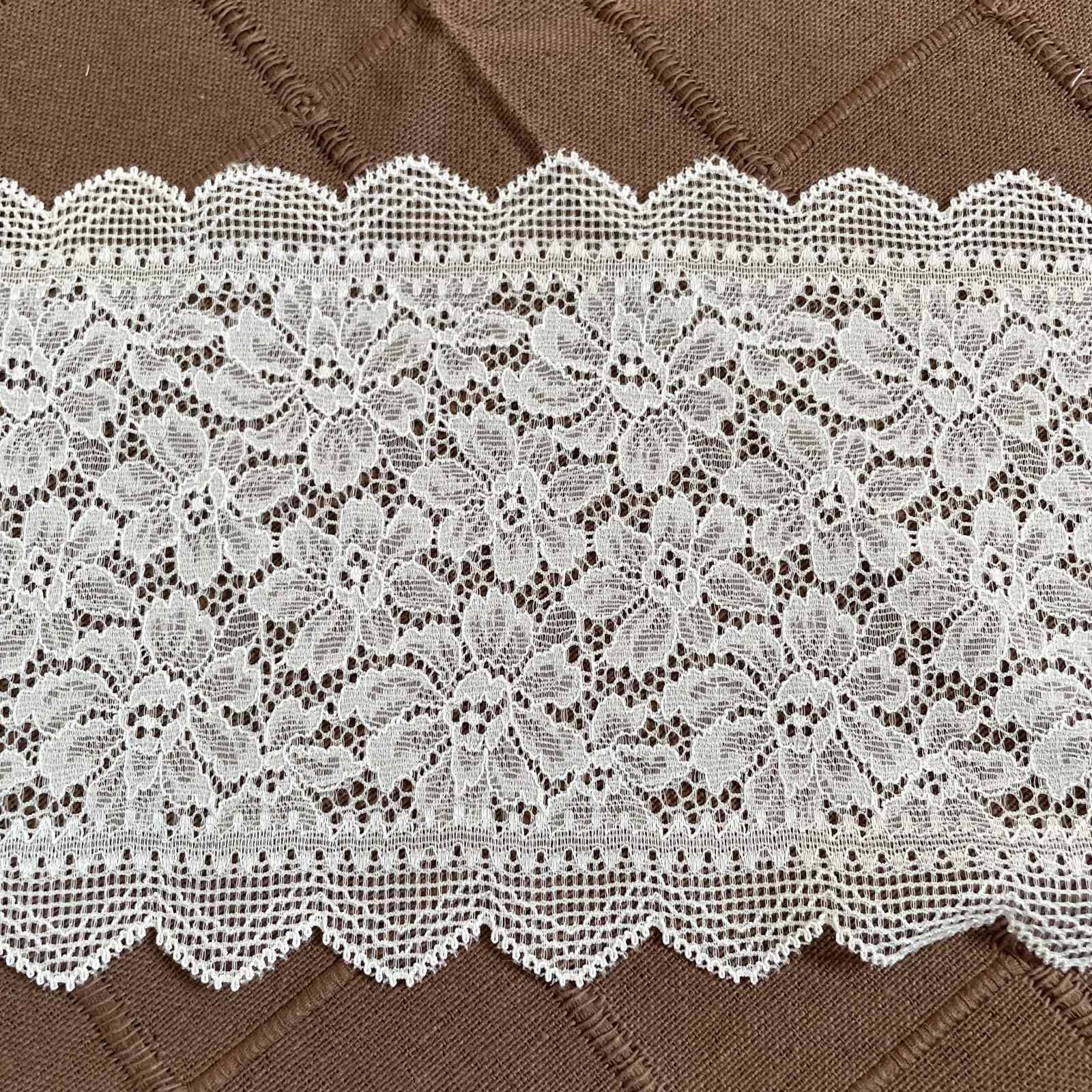 【1m130円日本製】幅13.6cm薔薇柄ラッセルストレッチレース オフホワイト5m [3782 オフ白(5m)]