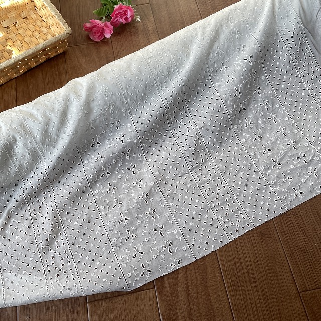 日本製・刺繍生地レースです 花柄コットンレース
