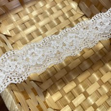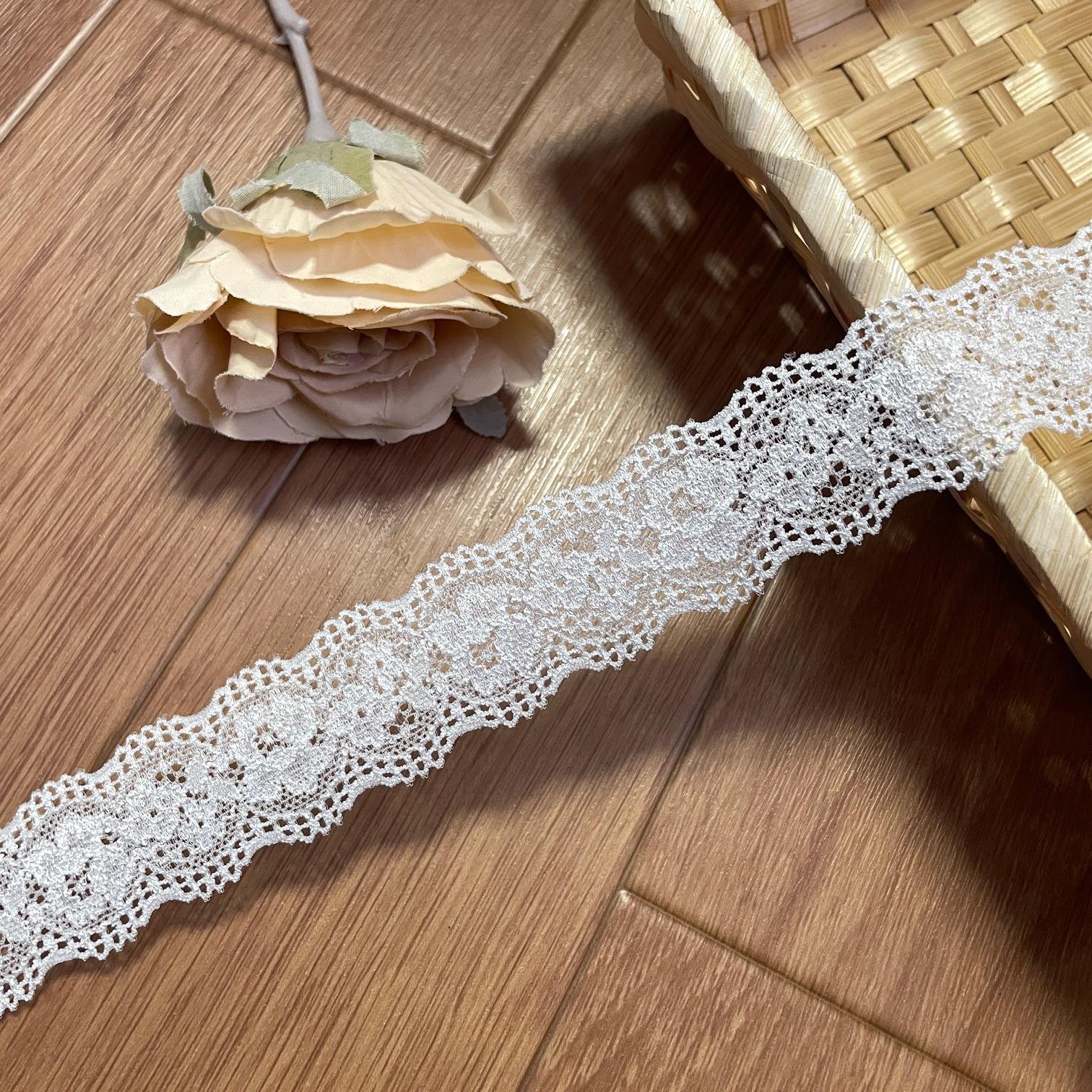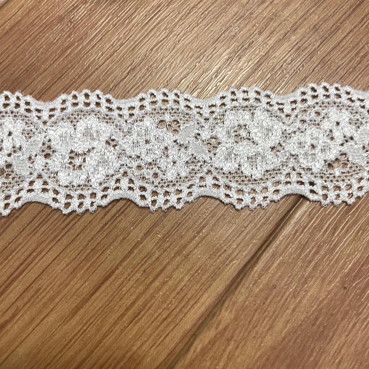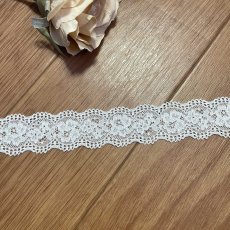 ラッセルストレッチレース オフホワイト 日本製 幅7.6cm薔薇柄 5m! [7516 オフ白]