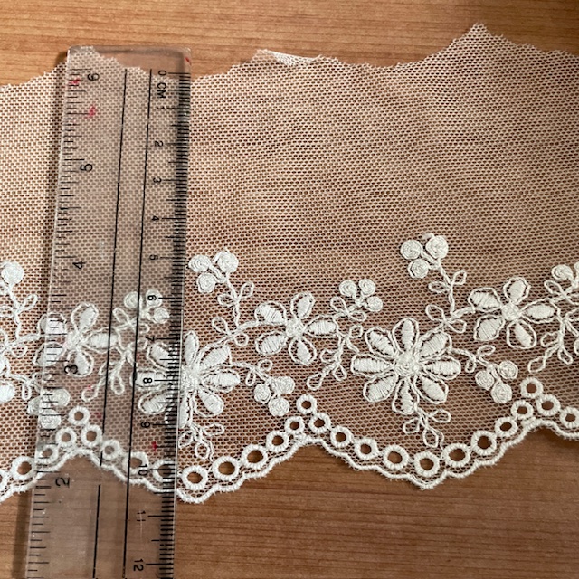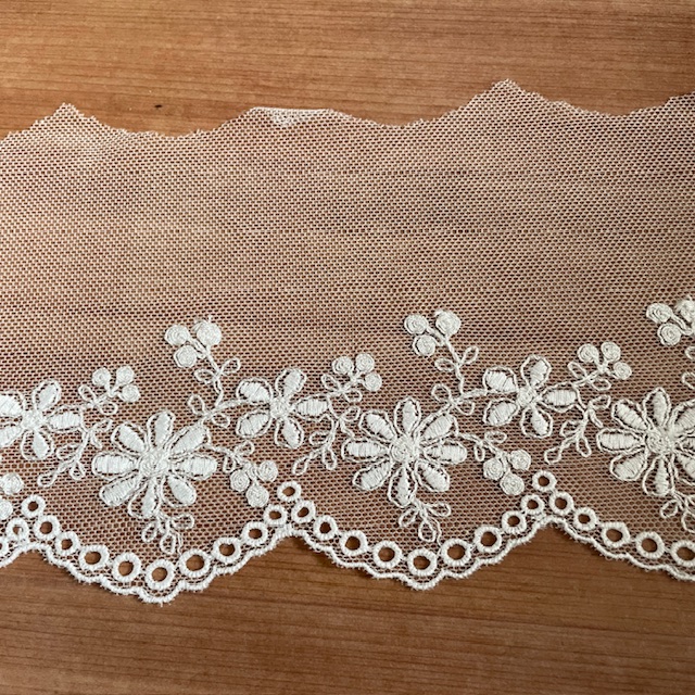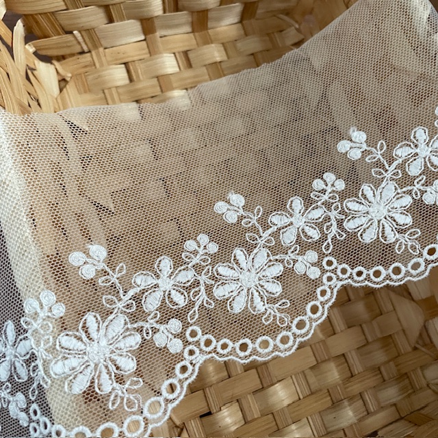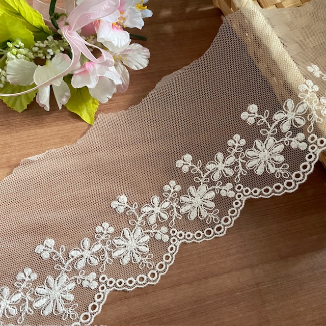 現品限り【日本製】チュールレース オフホワイト 幅7cm 5.5m 可愛い小花柄 [2510042 オフ白(5.5m)]