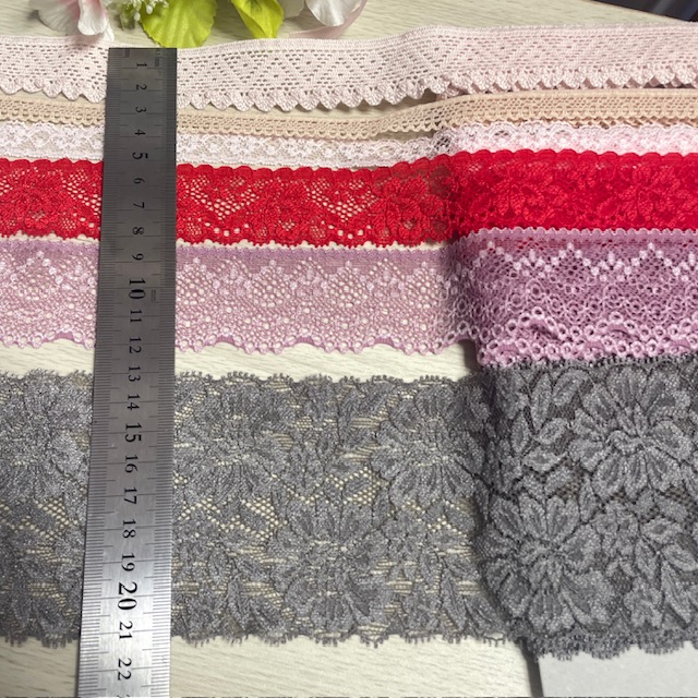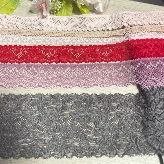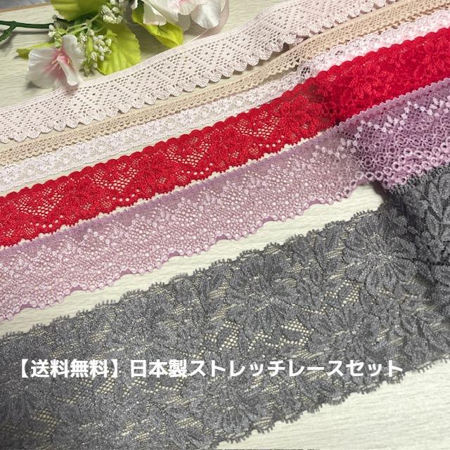 - > 【クリックポスト送料無料】1000円!グレー赤ピンク紫茶色のラッセルストレッチレース2m×6点セット高品質な日本製