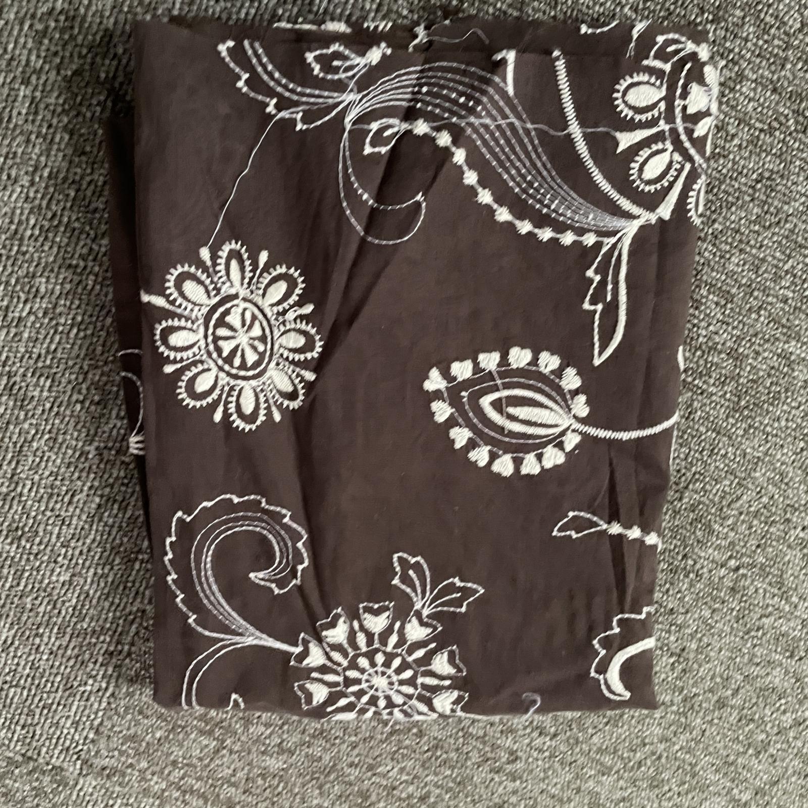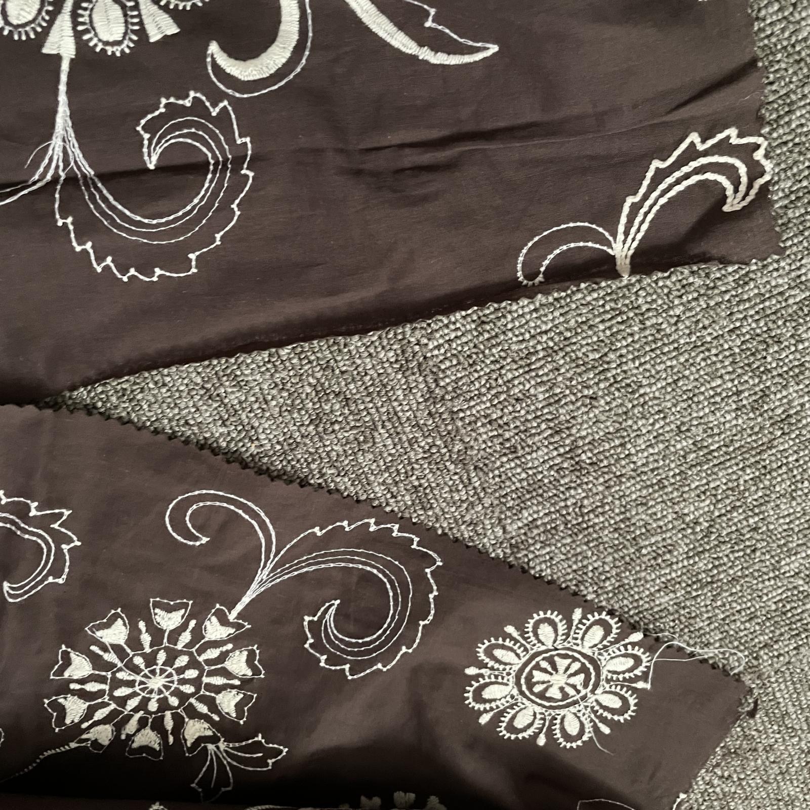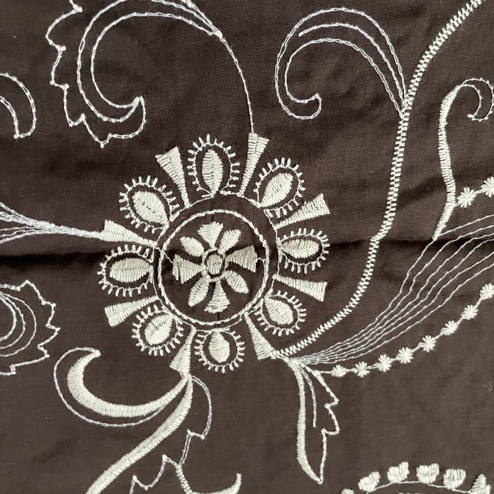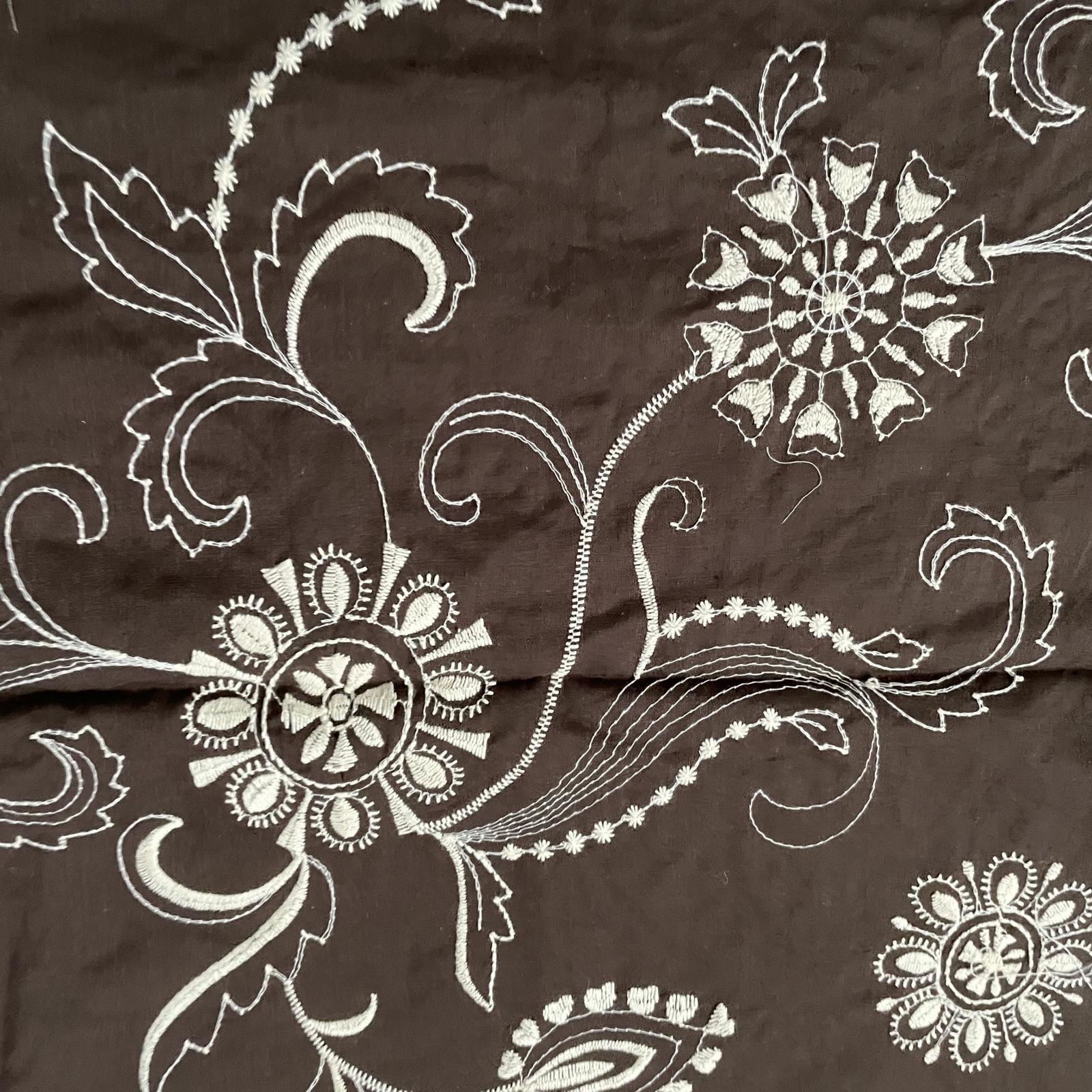オフホワイトの刺繍糸がきれいなブラウンの生地になります